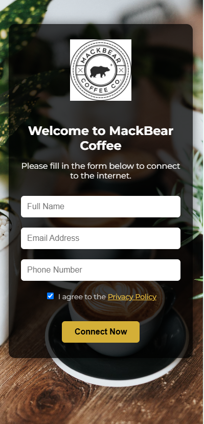 When your customers connect to your Wi-Fi, greet them with a branded login page. Offer internet access and collect valuable contact data while enhancing customer experience.